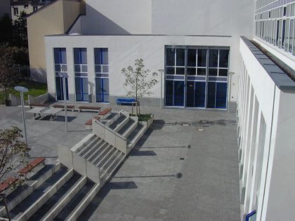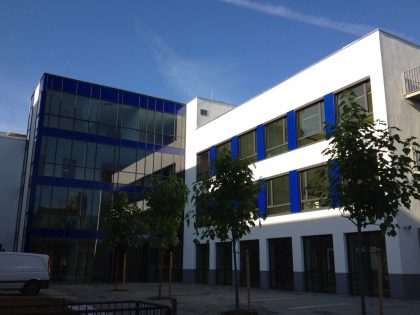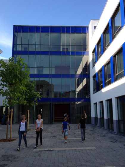 Die Blockrandbebauung der Machabäerstraße wird mit dem Neubau der Realschule bis an die Fronleichnamskirche geschlossen. Es entstehen 18 Klassenräume, ein Mehrzweckraum, Musikübungsräume und die Verwaltung der Realschule.