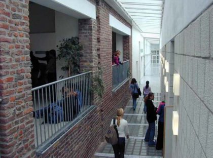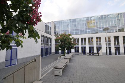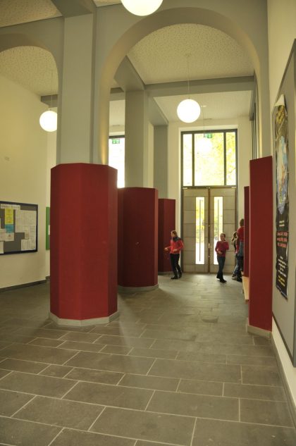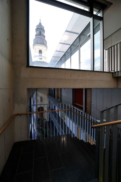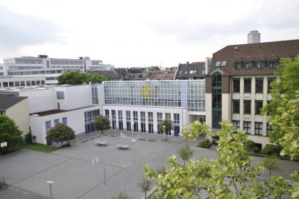 Der Neubau des Hildegardhauses mit naturwissenschaftlichen Räumen, Selbstlernzentrum und EDV-Räumen ergänzt die Straßenrandbebauung an „Unter Kranenbäumen“ und schließt gleichzeitig die vorhandene Sporthalle und die Bestandsgebäude an. Im Bestand wurden Fachbereiche zusammengefasst und Räumlichkeiten optimiert.